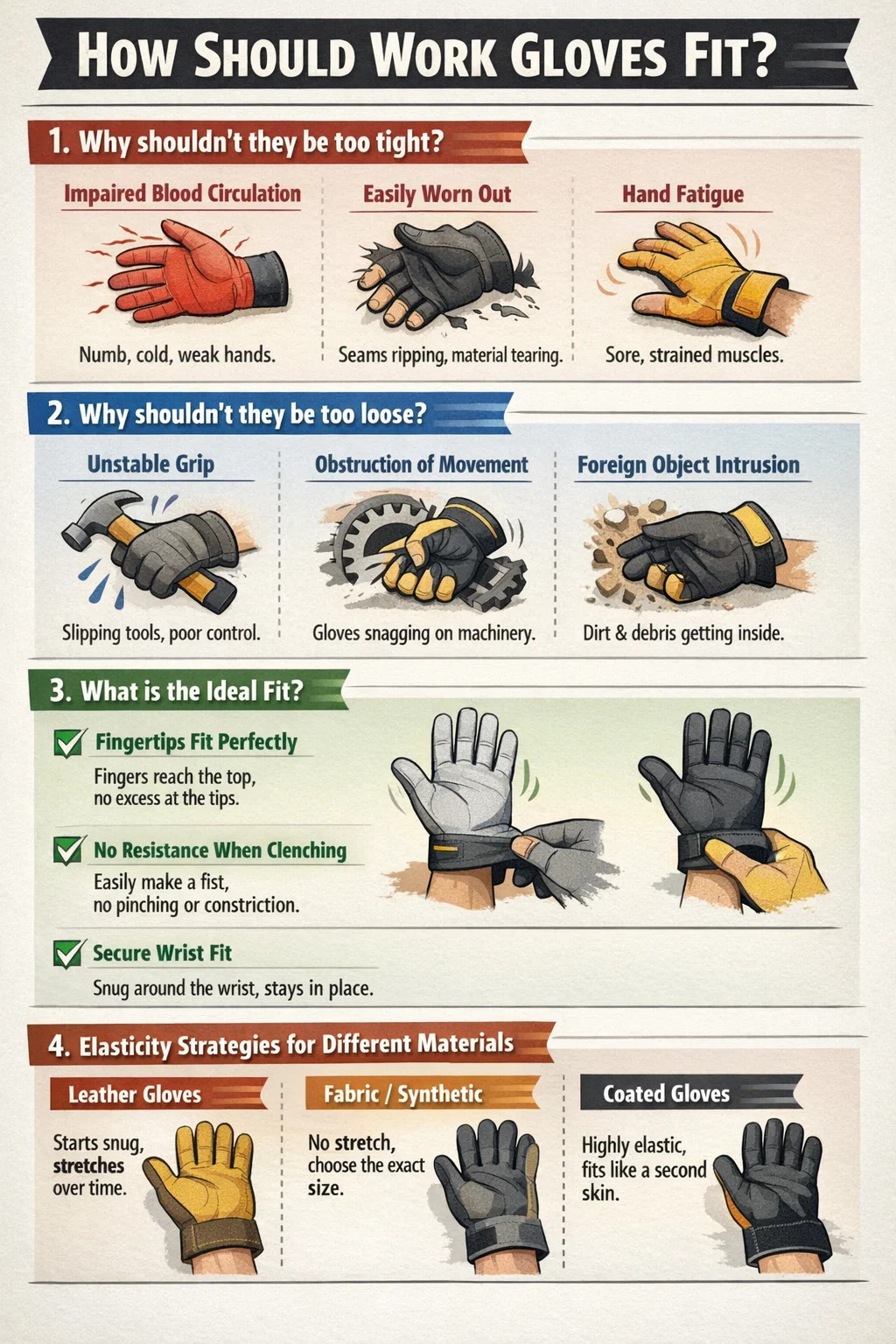 Mentre tutti vogliono flessibilità, scegliendo guanti da lavoro troppo stretti possono causare i seguenti problemi: