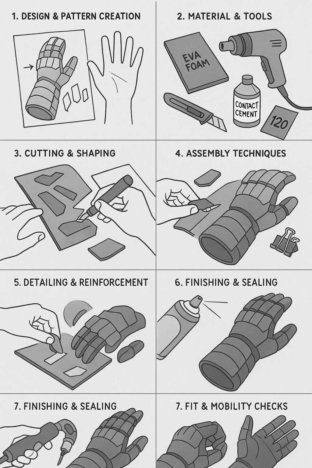 Creazione dell'EVA guanti in schiuma o guanti sono un metodo popolare per progetti di cosplay, LARP o costumi. Ecco una ripartizione pratica del processo: