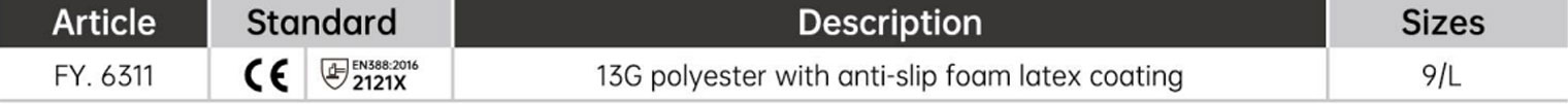 Tolleranza alla temperatura: il rivestimento in lattice rimane flessibile a temperature da lievi a moderate e non si indurisce né si spezza, garantendo comfort durante il lavoro continuo. Jiangsu Fanya Labor Protective Products Co., Ltd. è sottoposta a un rigoroso processo di certificazione internazionale per garantire che questi vantaggi siano dimostrati in modo affidabile nelle applicazioni del mondo reale, rafforzando così la reputazione di mercato dell'azienda.