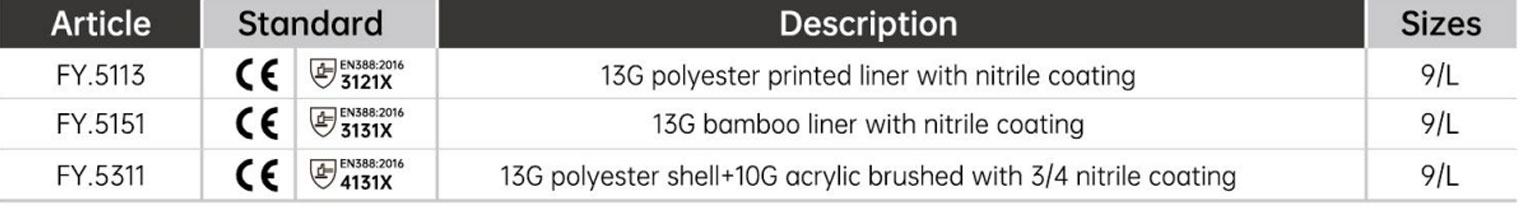In qualità di leader del settore, Jiangsu Fanya Labor Protective Products Co., Ltd. è specializzata nella ricerca, sviluppo e produzione di prodotti per la protezione del lavoro. La sua vasta esperienza garantisce un controllo di qualità completo dei guanti, dalle materie prime ai prodotti finiti.